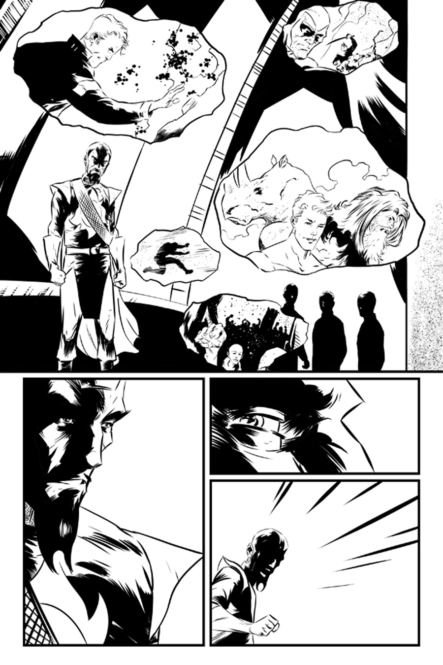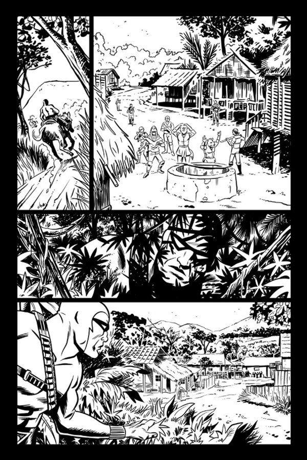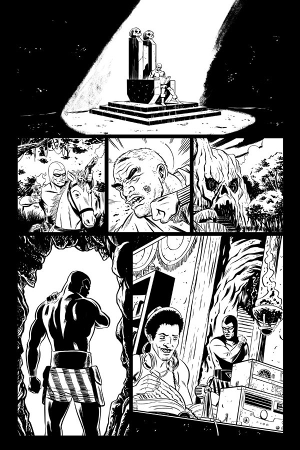 Temos também algumas paginas da nova minissérie do Fantasma (The Phantom). A minissérie tem roteiros de Brian Clevinger e arte de Brent Schoonover.
