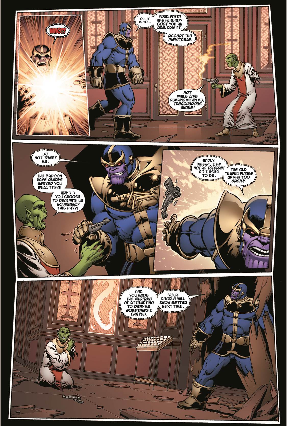 Thanos, o titã louco, está sob a luz forte dos holofotes. Com todo o burburinho em cima do universo Maverl nos cinemas, até mesmo os leigos no segmento criaram grande interesse no personagem e claro, num timing mais que planejado a casa das ideias tratou de dar ao vilão aparições mais do que suficientes para saciar a vontade dos fãs, novos e antigos, em ter o que ler… de novo ou de antigo, o importante é estar cara a cara com um dos personagens mais influentes da editora. Não à toa, ninguém mais ninguém menos que seu criador, o veterano Jim Starlim, foi escalado para escrever e desenhar um conjunto de graphic novels inéditas para o titã, com a primeira parte, Thanos: Infinity Revelation, lançado em agosto de 2014.