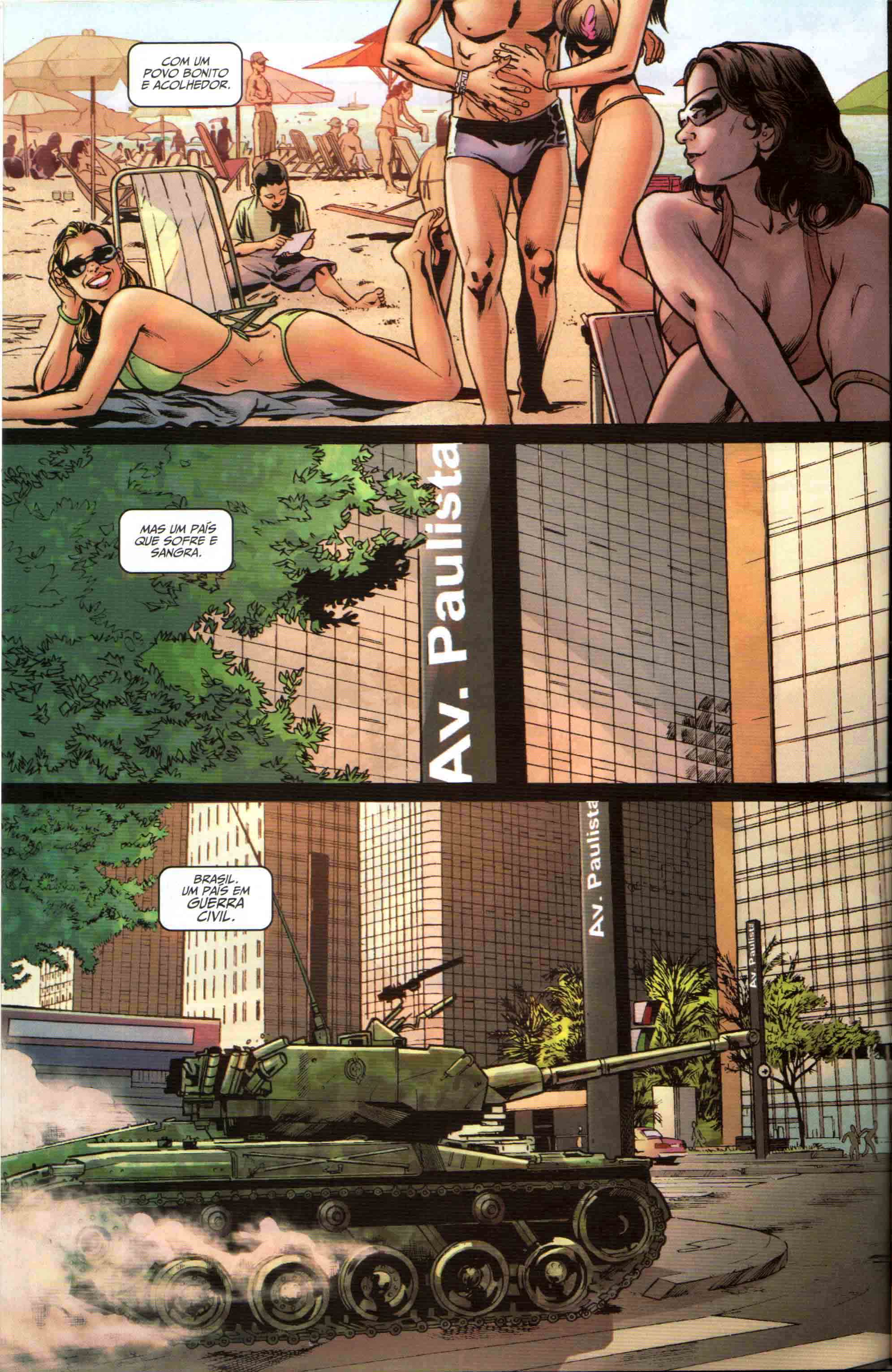 A trama de Pátria Armada esta prevista para uma minissérie em 3 edições, com isso surge logo uma questão, minisséries tem um número de paginas menor para contar uma história, o autor tem que aproveitar ao extremo as mesmas… Esta primeira edição segue na contra mão disto, acaba mostrando-se superficial demais, com um roteiro entrecortado e por vezes desconexo o que acaba se refletindo na fluidez do mesmo.