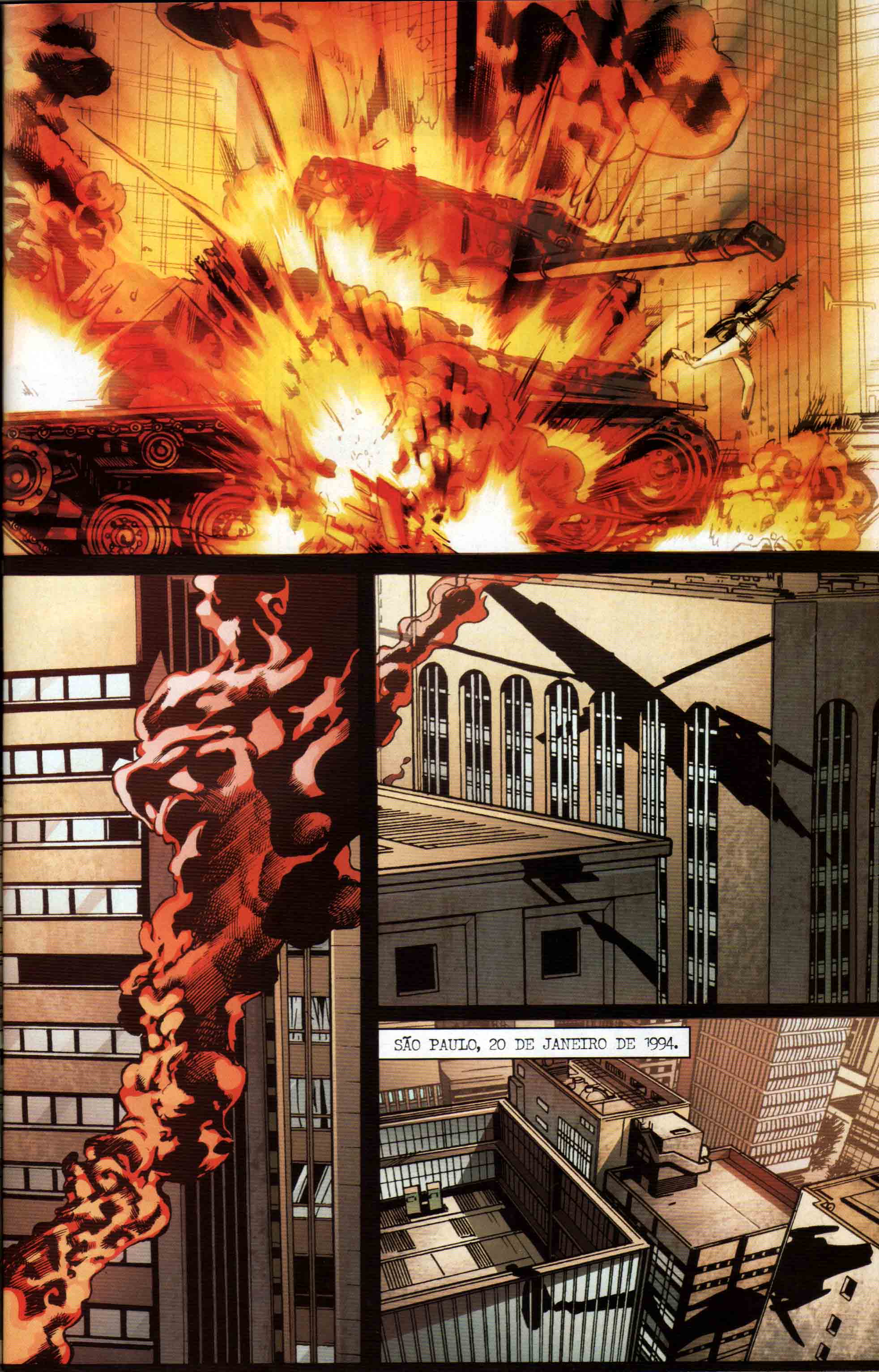 A aposta centrada mais no visual gera uma trama muito corrida, chegando a utilizar uma pagina dupla que soa mais como “firula” do que efetivamente uma contribuição para a saga, páginas estas que poderiam explorar subtramas que figuram de forma mais alegórica do que funcional, já que o problema justamente é espaço para uma história que apresenta várias camadas. A apresentação do supergrupo Tropa de Impacto acaba ficando limitada, apenas o Tenente Guari tem sua origem contada.