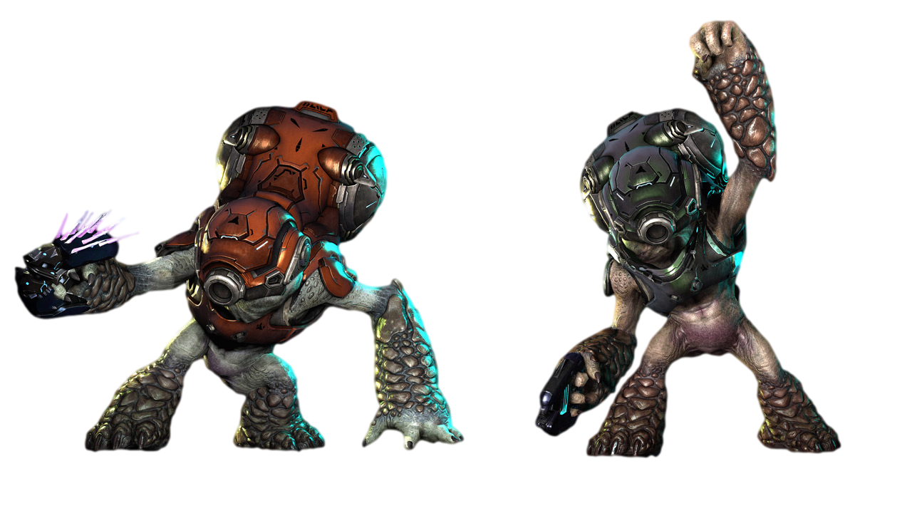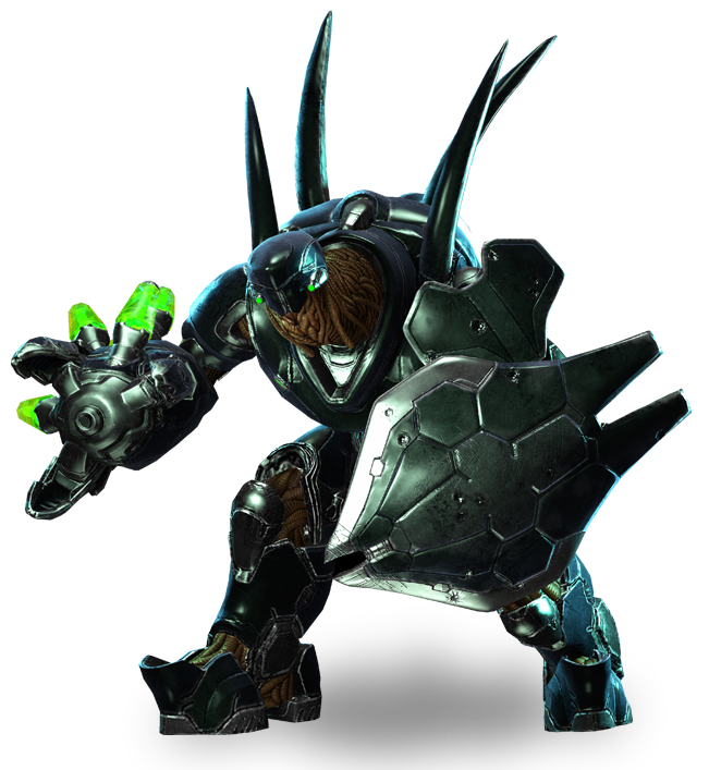 Protegidos por uma poderosa couraça equipada com escudos e canhão de energia os Mgalekgolo são extremamente resistentes e violentos.