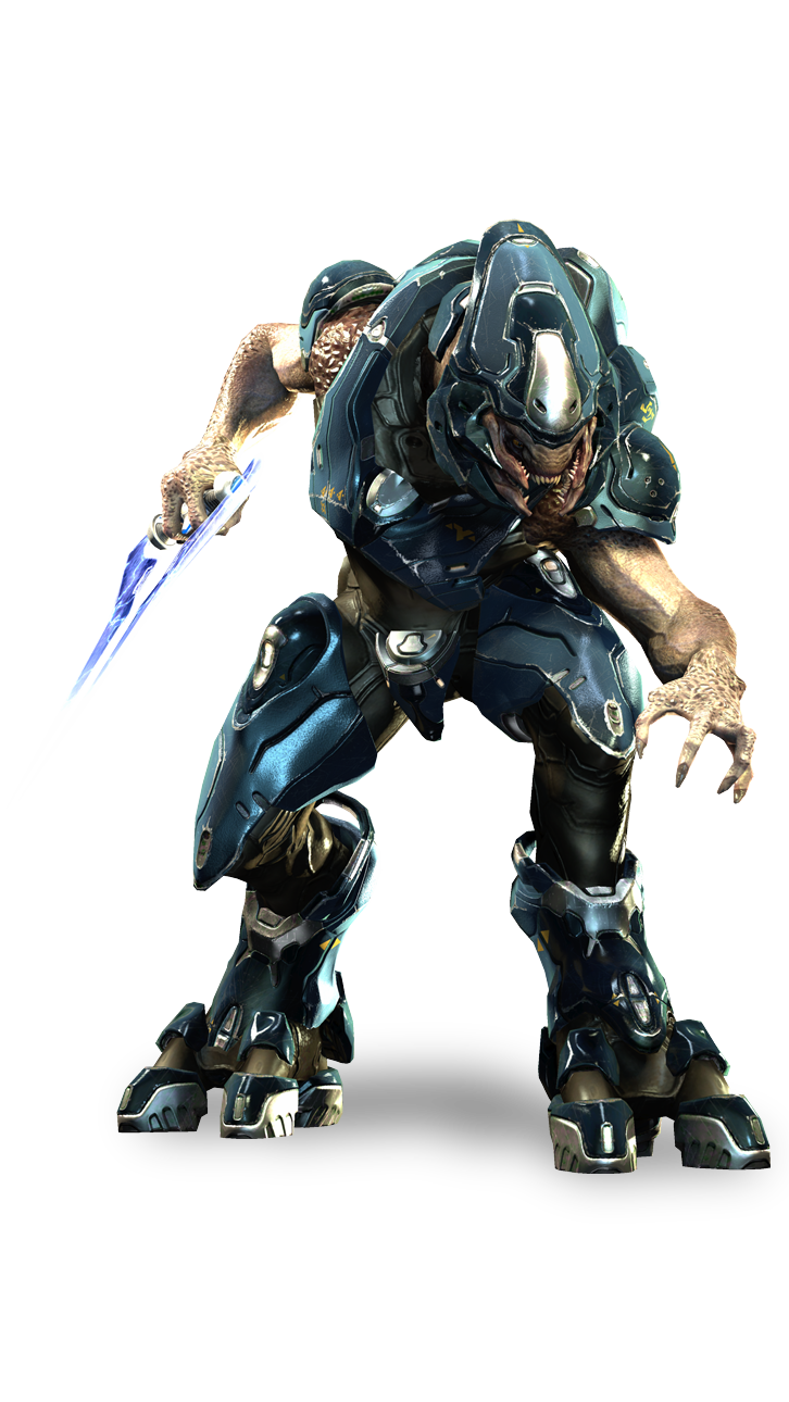 - Sangheili (Elits): Raça com aspecto reptiliano e com a característica marcante de suas quatro mandíbulas, os Sangheili são conhecidos por sua resistência física, disciplina militarizada e grande apreço pelo combate.
