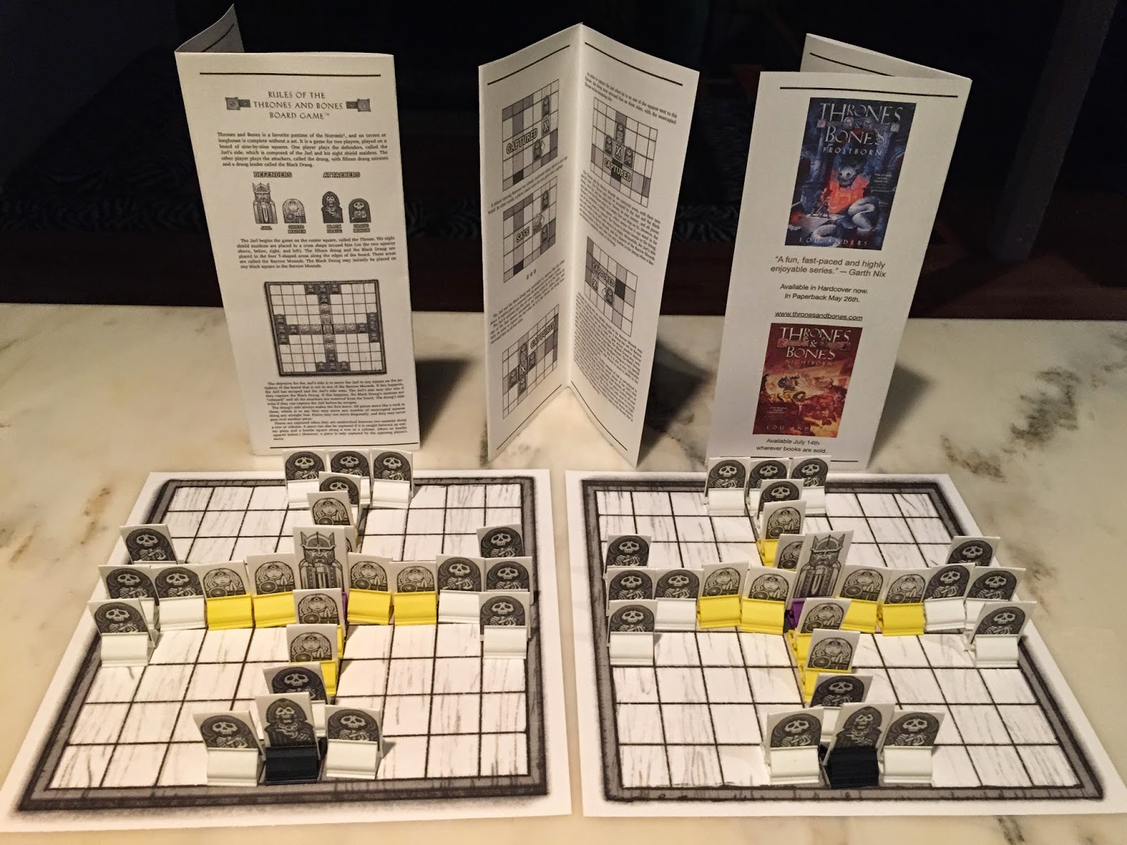 Não satisfeito em escrever um belo texto que contém um narrativa divertida e dinâmica, Lou Anders nos presenteia com Tronos e Ossos, o jogo que Karn adora e quase não larga em momento algum durante toda a obra; senão jogando, ao menos usando as estratégias do tabuleiro para se livrar de situações no mundo real.