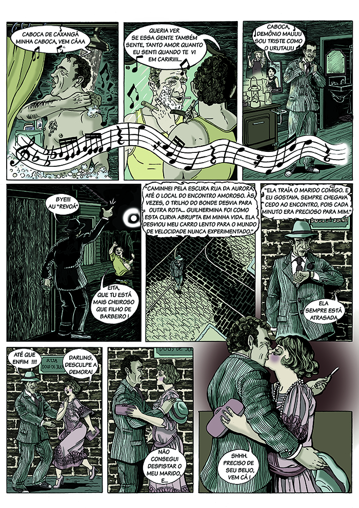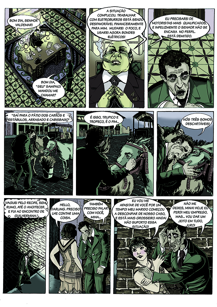 BOCA DE OURO: Recife, 1913. Com o crescimento desordenado e a modernização da cidade, Valdemar, um motorista de bonde de burros, perde o seu emprego e entra em desespero. Mas quando vê pela primeira vez o jogo do bicho, percebe uma oportunidade para conquistar a fortuna e a mulher de seus sonhos. Valdemar só não esperava pelo preço que teria de pagar em troca dessas ambições, um preço muito mais caro do que o ouro! Arte em nanquim e pintura digital.