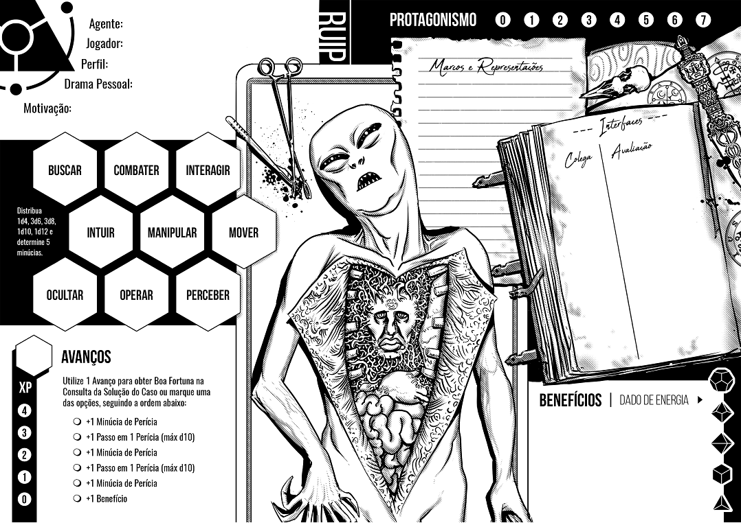 Já os demais serão os detetives, os Investigadores da Agência que lida com todo o tipo de evento fora do comum em um cenário.