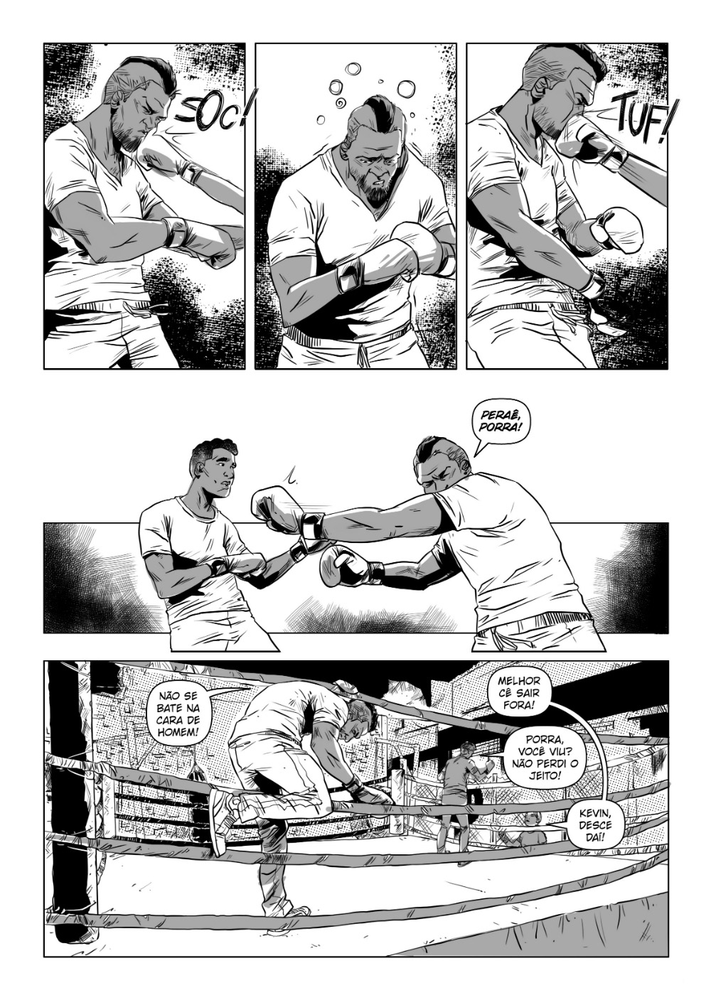 Ao longo de 160 páginas em preto e branco, a HQ selecionada pelo ProAC – Programa de Ação Cultural do Estado de São Paulo, conta a intensa história de um jovem tentando recolocar sua vida nos trilhos através do esporte.