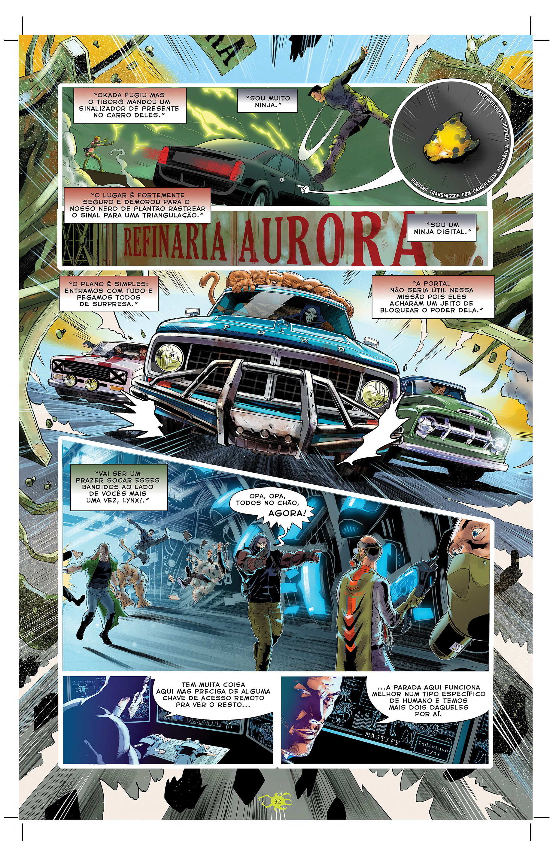 Mais uma vez Tony Brandão e Junior Cortizo com sua arte bonita, suas cores vivas e vibrantes dão todo o tom de diversão e ação ao roteiro de Nando Alves que amarra e estrutura muitíssimo bem a narrativa deste volume 2 que resgata toda a tônica cinematográfica do volume 1 e expande sobremaneira a ideia do Carrpato e da trama maior que há em torno dos irmãos Perseu e Aline, bem como das maquinações da Tadashi Tecnológica que começa a se movimentar mais ferozmente atrás das cortinas.